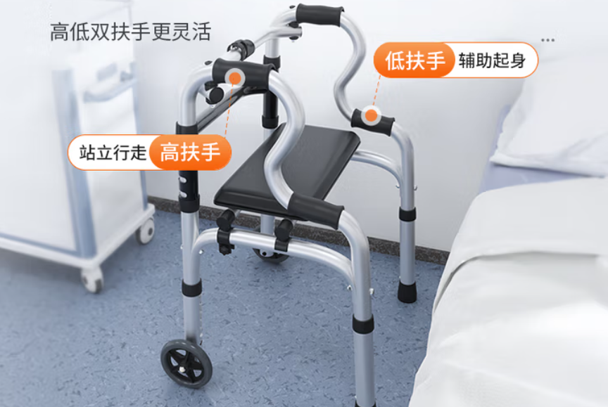 高度调节方便,稳固也不摇晃,适合老年人扶助走路很好,走累了还可以坐一下,也方便老年人坐着洗澡也很方便,也很轻巧,老年人自己收纳也很方便